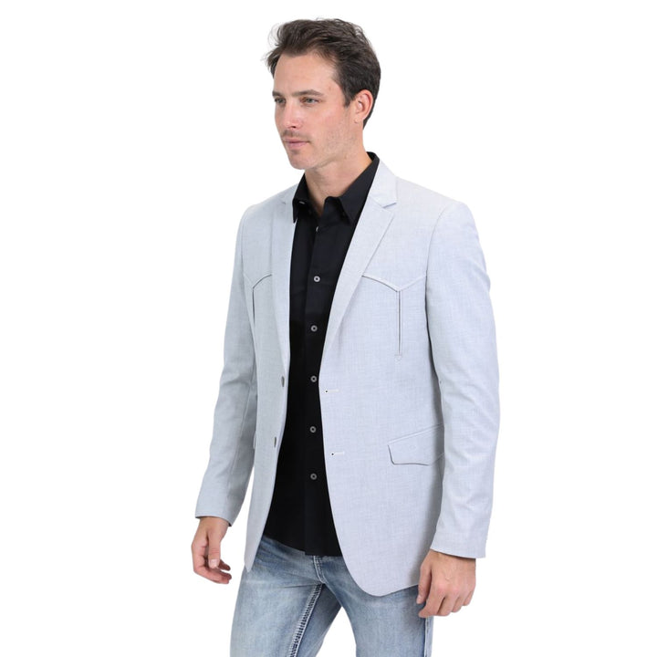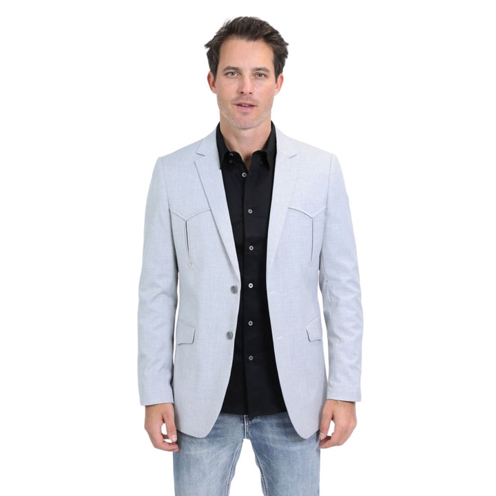 El blazer Platini Western Grey BLW10522 Confeccionado en tejido premium gris, presenta corte elegante de botonadura doble Ideal para eventos formales para elevar cualquier look casual con actitud.