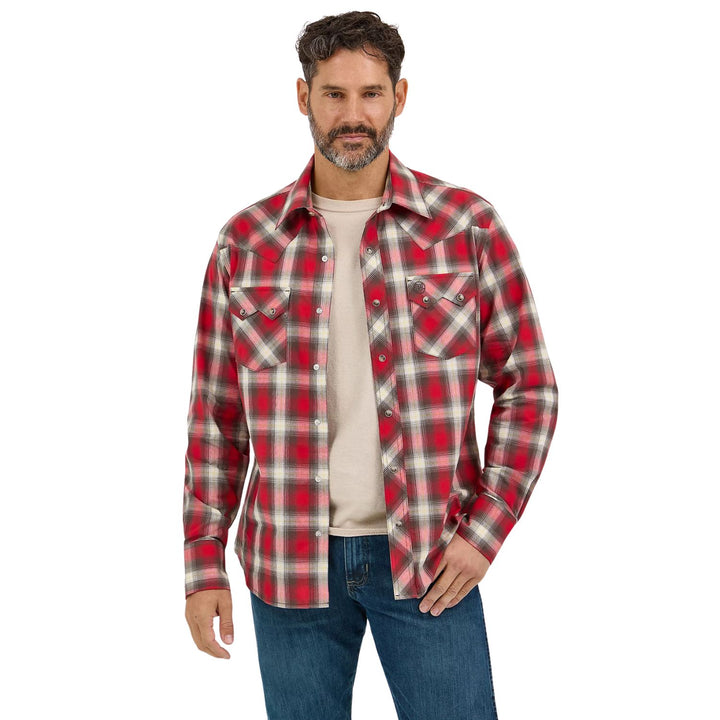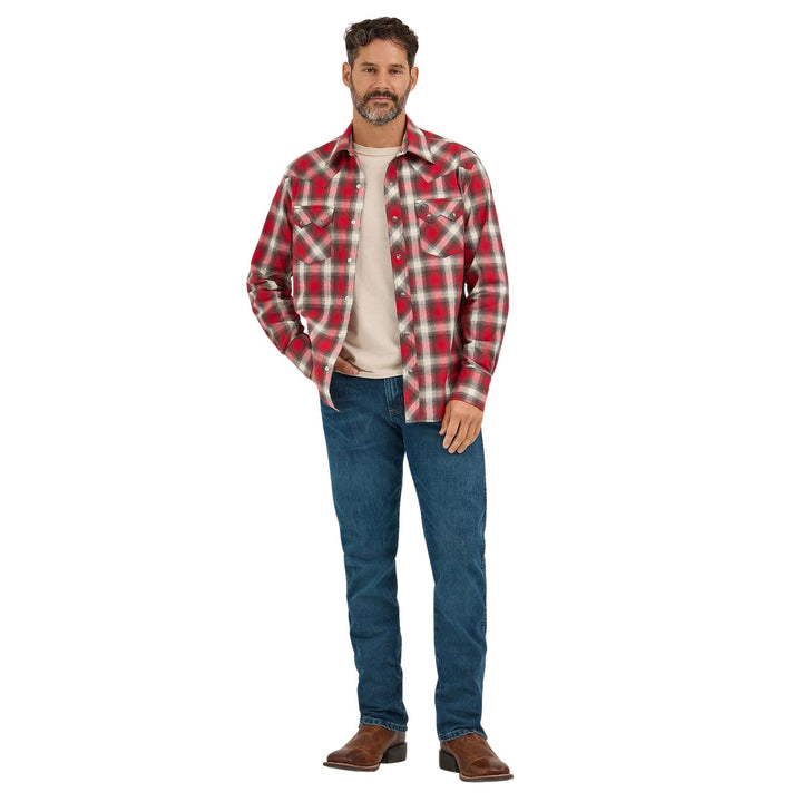 Camisa Wrangler Retro Firetruck Red – Estilo Western Clásico con Toque Moderno