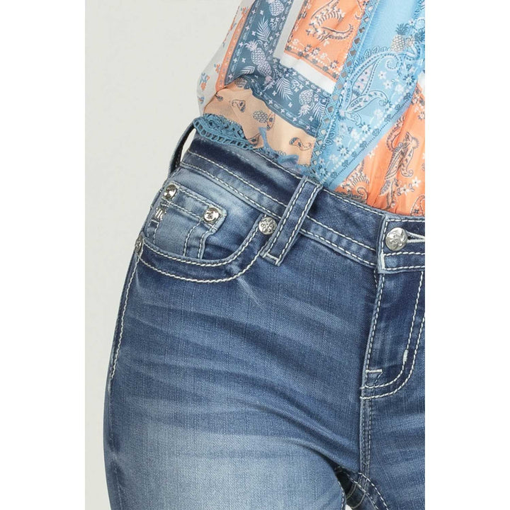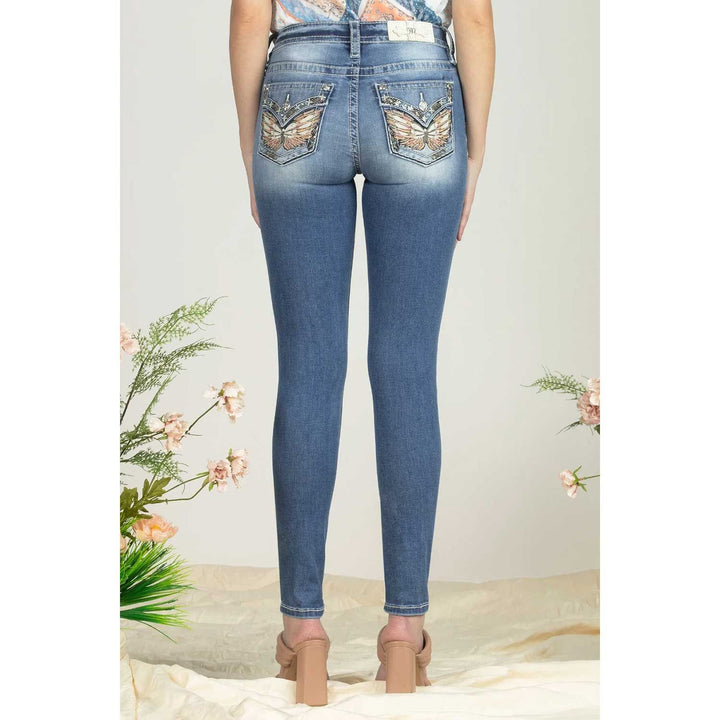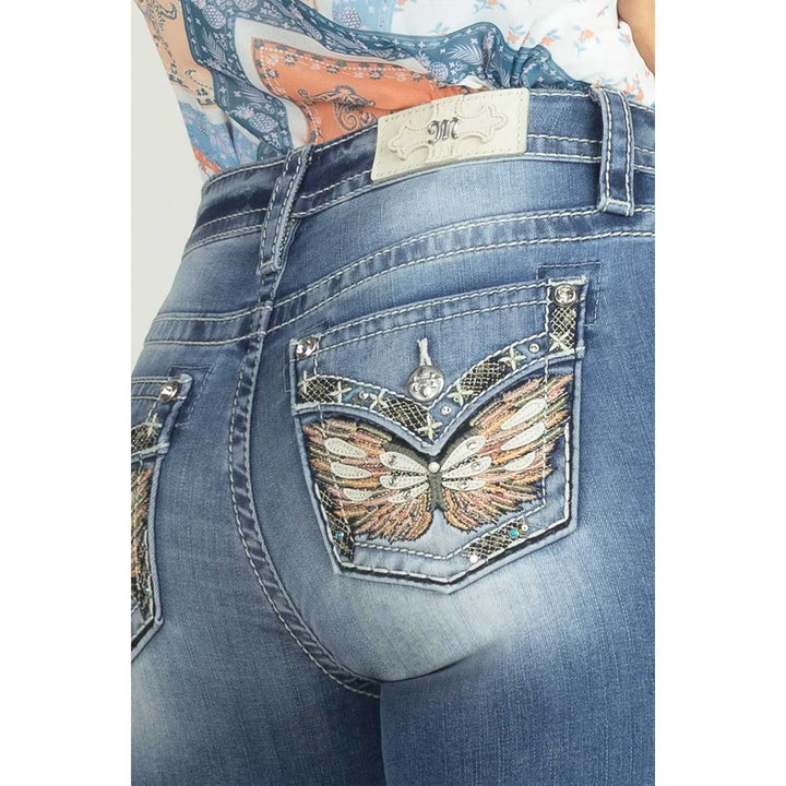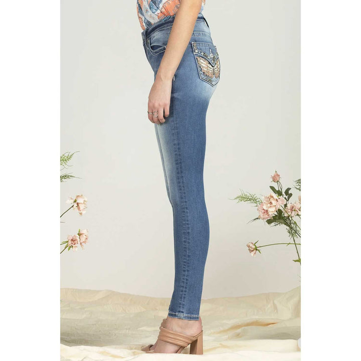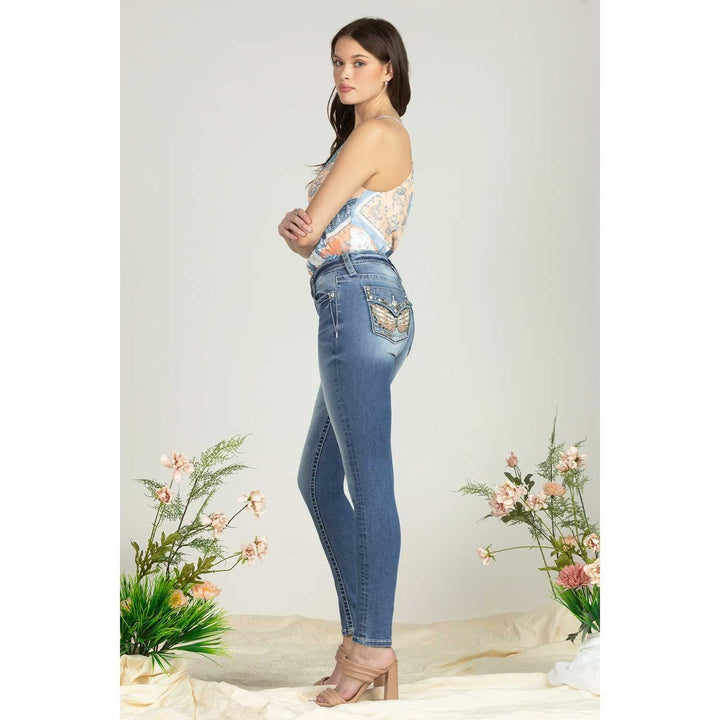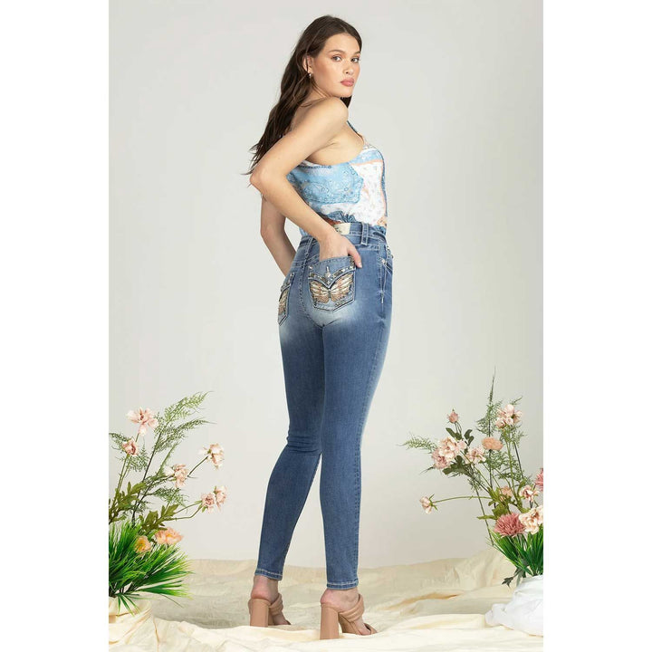 Los Miss Me Jeans 32" Aztec M3444B55 destacan por su diseño único con bordados inspirados en patrones aztecas. Su corte moderno y el denim elástico ofrecen comodidad y un look llamativo lleno de personalidad.