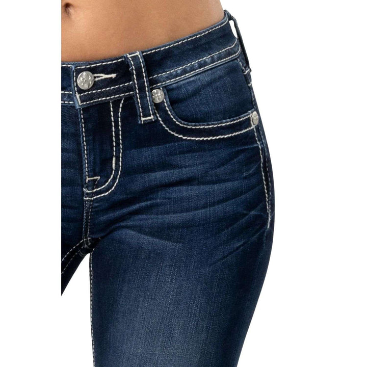 Los Jeans Miss Me Crissy Silver Bootcut M3444B119V combinan un diseño clásico con detalles plateados que aportan un toque de brillo y sofisticación. Su corte bootcut favorece la silueta femenina y brinda comodidad, mientras que la mezclilla de alta calidad garantiza durabilidad. Perfectos para quienes desean destacar con estilo western elegante y distintivo.