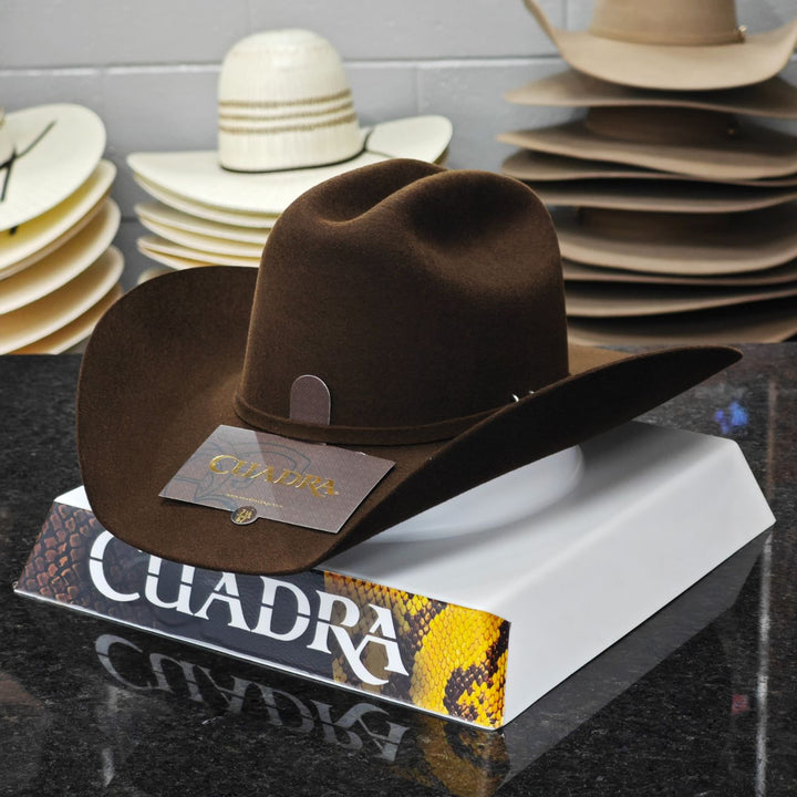 La Texana Cuadra 5X Python Chocolate fusiona artesanía de lujo con presencia auténtica del estilo vaquero. Confeccionada en fieltro 5X de alta calidad con detalles de piel de pitón, presenta ala de 4 1/4″ y copa moldeada que aportan estructura y porte impecable. Ideal para destacar en rodeos, eventos o cualquier ocasión donde el estilo y la tradición se encuentran.