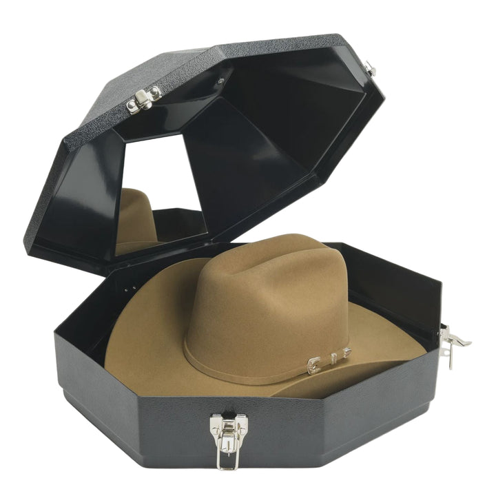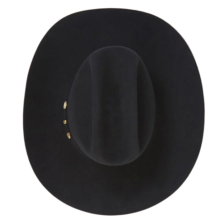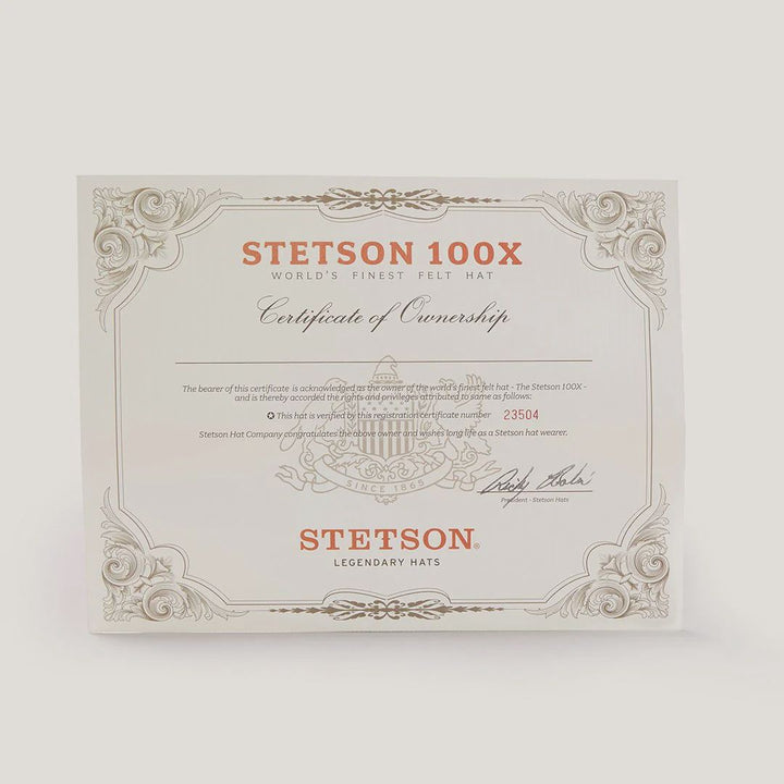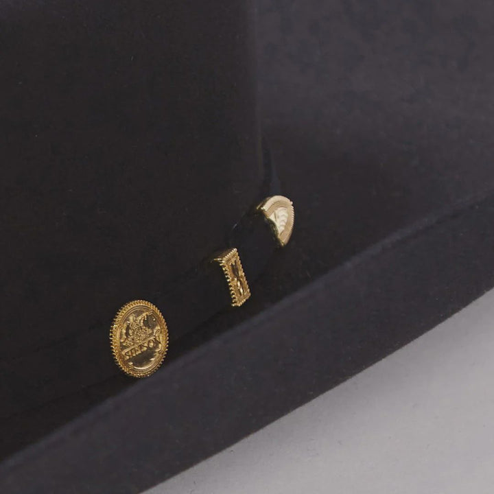 High-end cowboy hat crafted from 100% beaver felt in black, offering softness, durability, and a sleek finish. Its classic design features a traditional crown, a firm brim, and a fine leather band with the Stetson insignia. Ideal for those seeking distinction and authenticity in the most refined Western style.