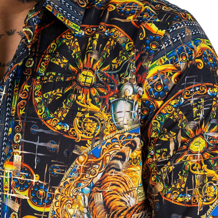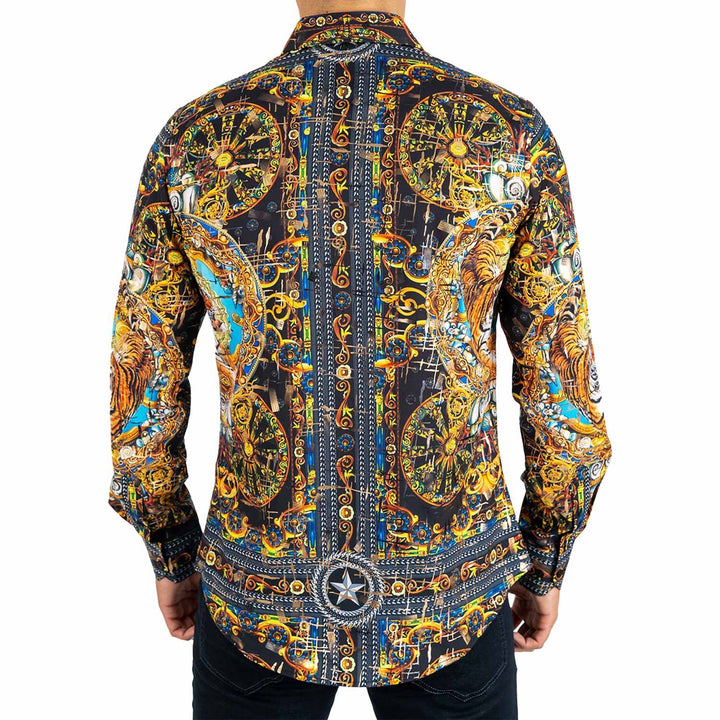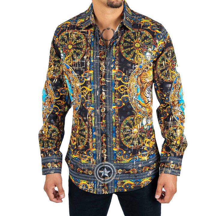 Camisa Platini Royal Black Print FPL8120 – Estilo Elegante con Sello Vaquero