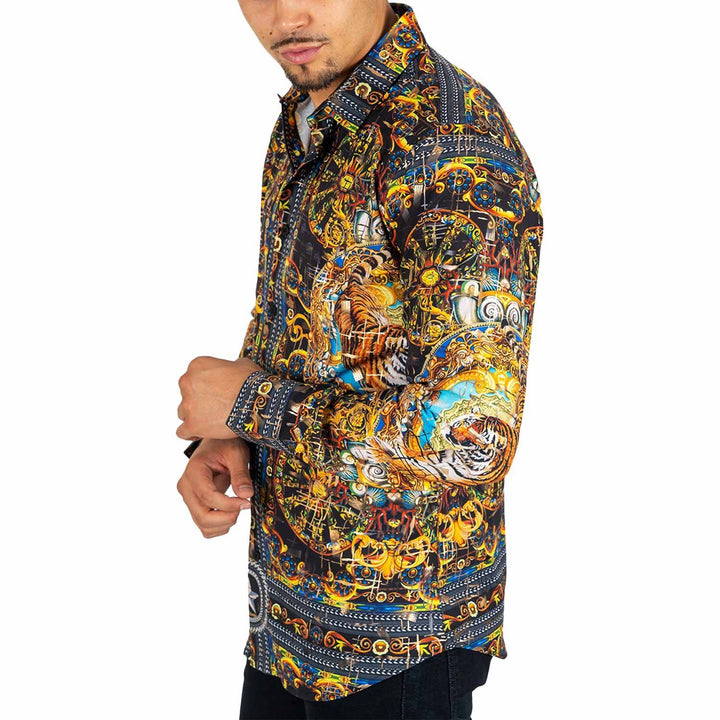 La camisa Platini Royal Black Print FPL8120 combina un diseño sofisticado con un toque auténtico del oeste. Su base negra profunda sirve como lienzo para un estampado llamativo y moderno que aporta carácter sin perder la elegancia. Confeccionada en un tejido cómodo y de calidad, esta camisa es perfecta para quienes buscan un look versátil que vaya del trabajo a una salida casual.