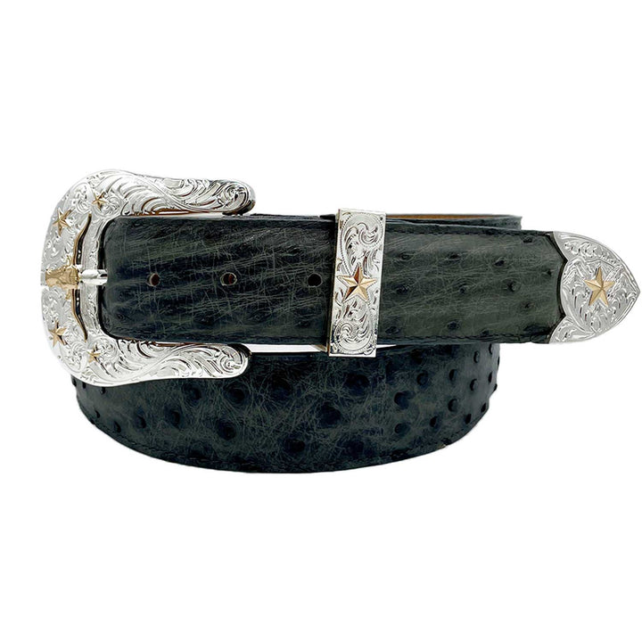 Cinto Cuatralba Avestruz Gris – Estilo Western con Textura Distintiva