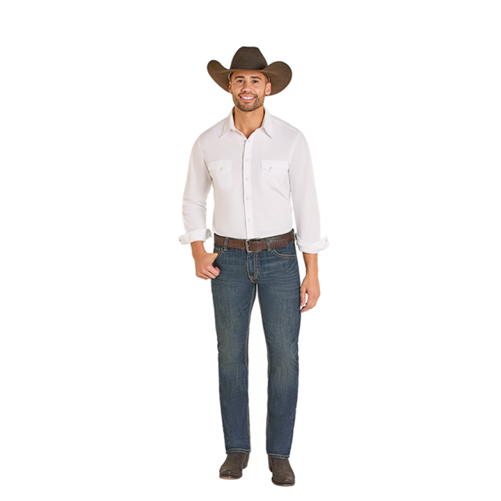 Los jeans Rock & Roll Pleather Revolver BM1RD08023 combinan la tradición vaquera con detalles audaces de moda urbana. Confeccionados en mezclilla premium y detalles en “pleather” (piel sintética) en los bolsillos traseros, ofrecen un diseño que destaca tanto por textura como por estilo. Su corte recto clásico le permite un uso versátil, ideal para combinar con botas vaqueras o casualSport.