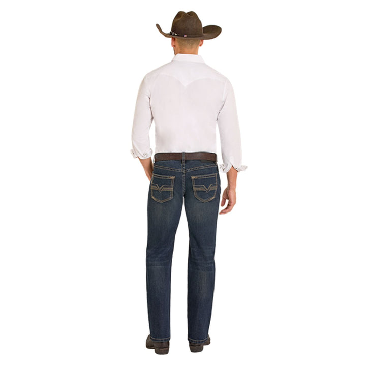 Los Jeans Rock & Roll Two Tone Pistol BM1PD08018 presentan un diseño de doble tono que aporta carácter sin dejar de lado la comodidad. Confeccionados en mezclilla resistente, ofrecen corte “pistol” de ajuste regular con pierna recta y abertura diseñada para usarse con botas. Detalles como los bordados decorativos en los bolsillos traseros y el acabado en sarga de algodón subrayan su autenticidad western.