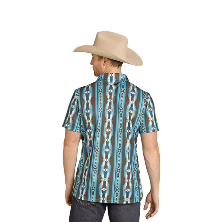 Rock & Roll Polo Aztec Teal BM51T07683 – Estilo Western Masculino con Detalle de Patrón Azteca