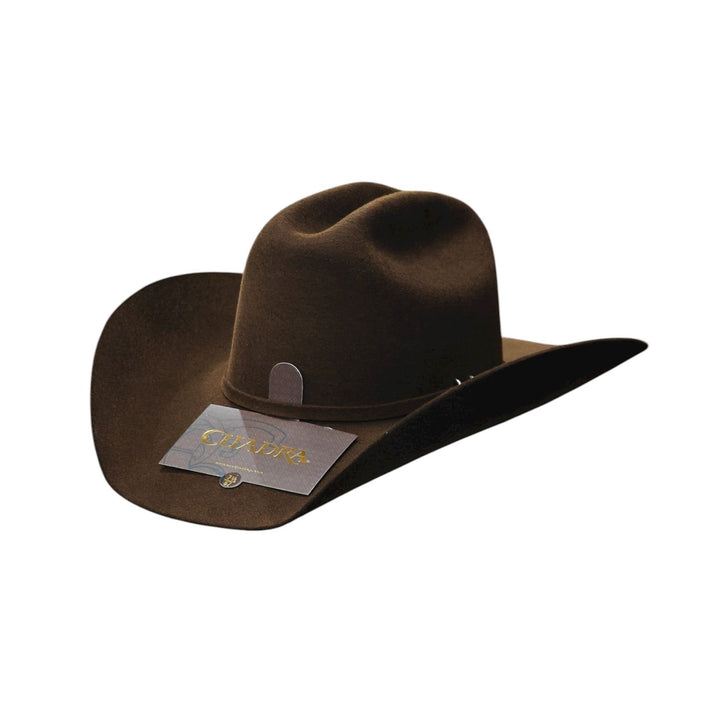 La Texana Cuadra 5X Python Chocolate fusiona artesanía de lujo con presencia auténtica del estilo vaquero. Confeccionada en fieltro 5X de alta calidad con detalles de piel de pitón, presenta ala de 4 1/4″ y copa moldeada que aportan estructura y porte impecable. Ideal para destacar en rodeos, eventos o cualquier ocasión donde el estilo y la tradición se encuentran.