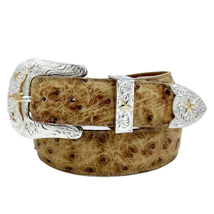 Este cinturón Cuatralba está elaborado con auténtica piel de avestruz en tono orix, un color tierra sobrio y versátil que combina a la perfección con cualquier estilo. Su textura única, costuras finas y acabado artesanal lo convierten en una pieza imprescindible para quienes buscan distinción y calidad en cada detalle.