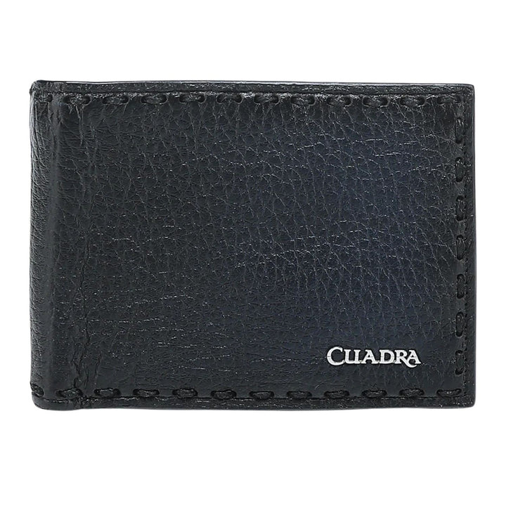 Cartera para caballero elaborada en piel genuina de venado, reconocida por su suavidad y resistencia. Su diseño al frente incorpora detalles de tejido artesanal y una aplicación metálica del logotipo Cuadra, que le confieren un estilo sofisticado y exclusivo.