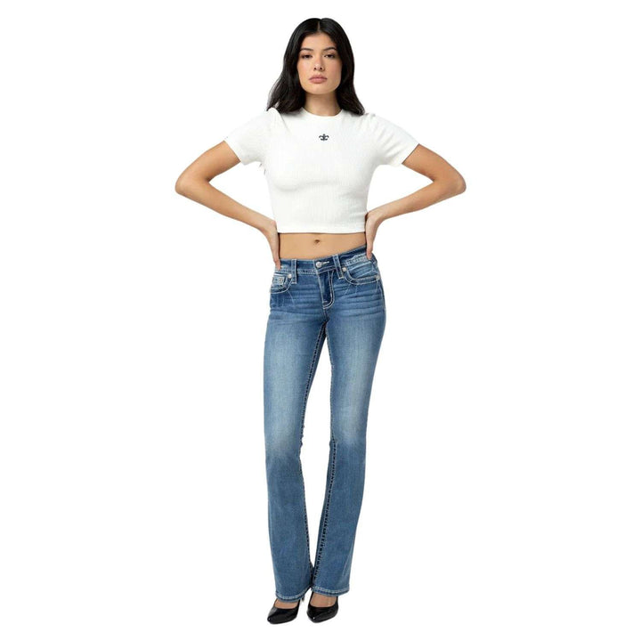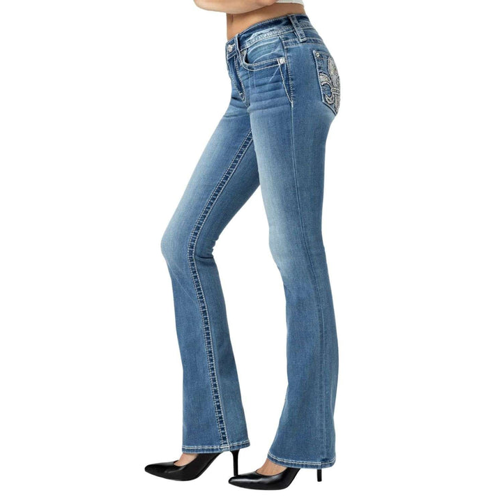 Jeans Miss Me Sequin Fleur Bootcut M9371BV – Elegancia y Brillo Femenino