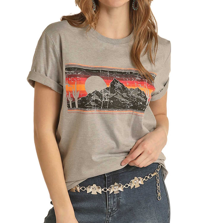 Playera Rock & Roll Mountain Sun RRUT21R061 – Estilo Western Casual con Actitud